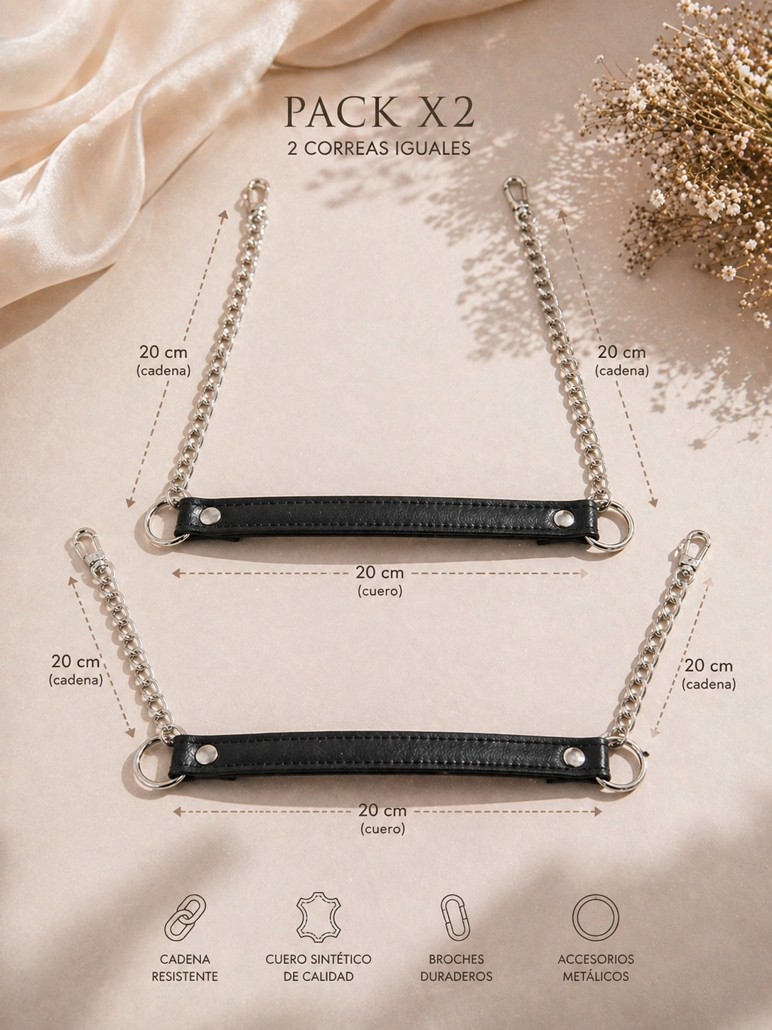 Es un pack de 2 correas que Miden 60cm las correas cadena y cuero ecológico son perfectas para colgar la cartera al hombro.