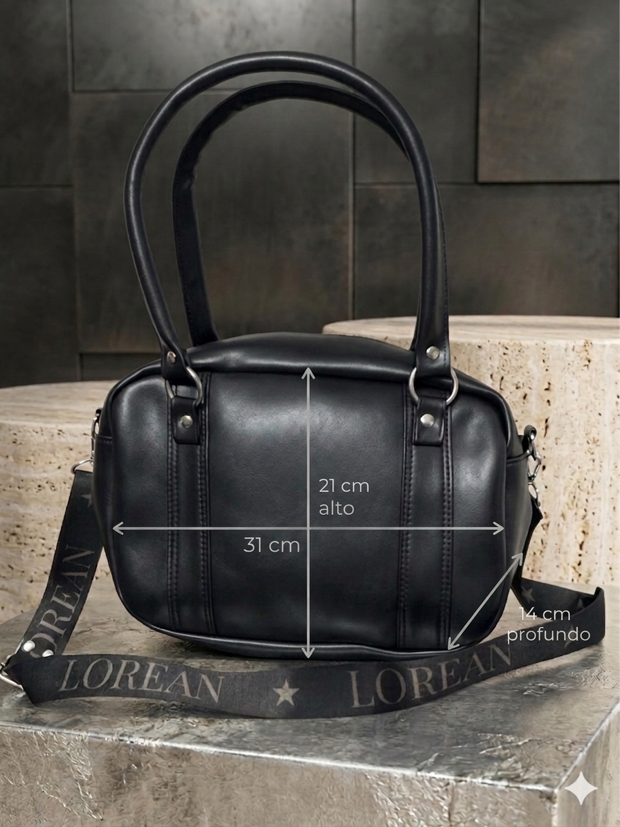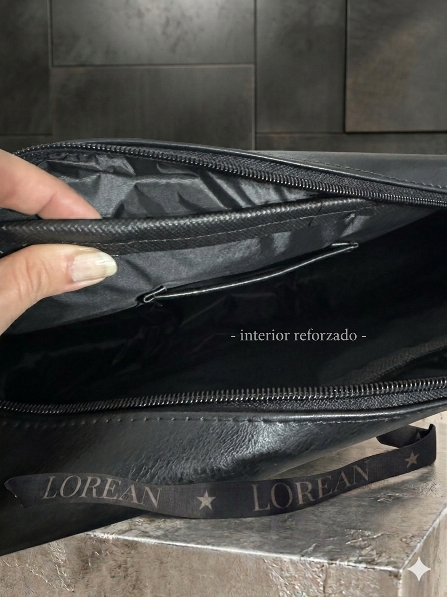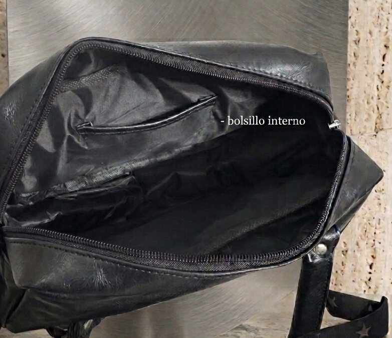 Cartera mediana negra toda forrada en su interior con tela impermeable . Bolsillo interno y externo con cierre . Medidas 21 alto 31 ancho y 14 profundidad CORREA LARGA 130 CM regulable