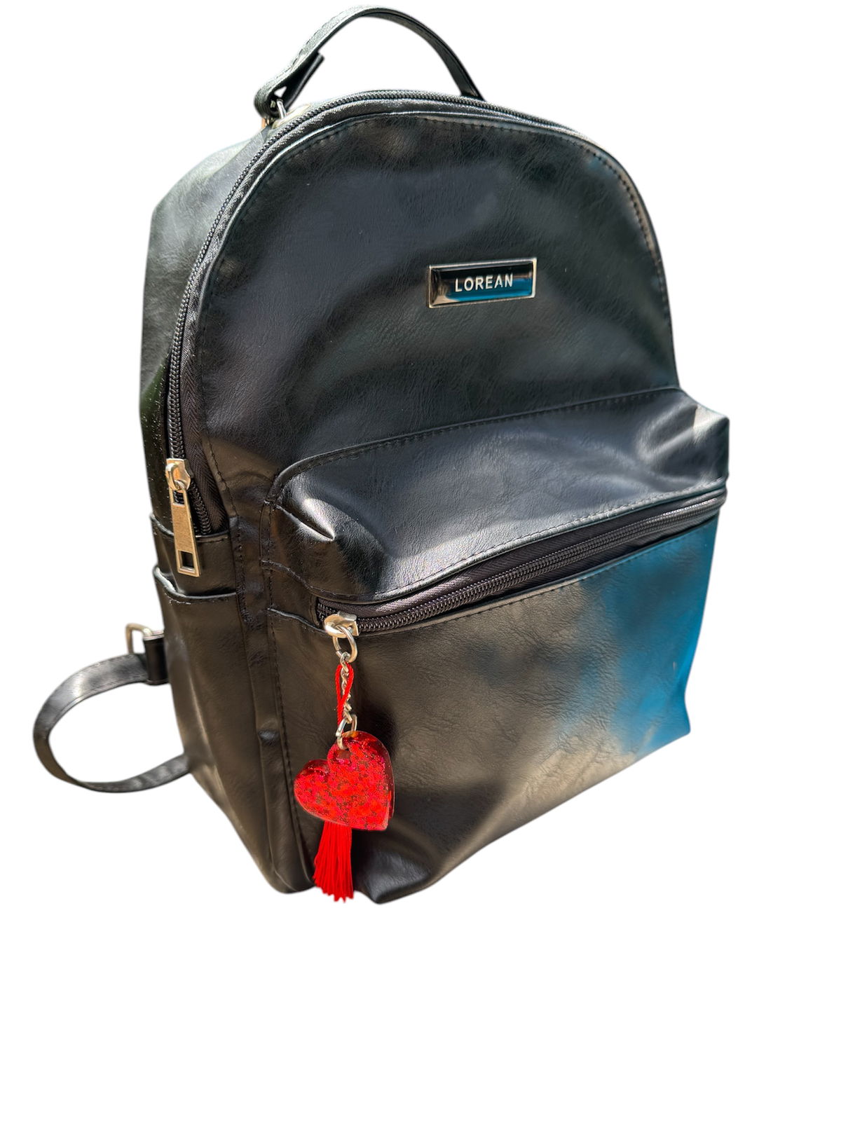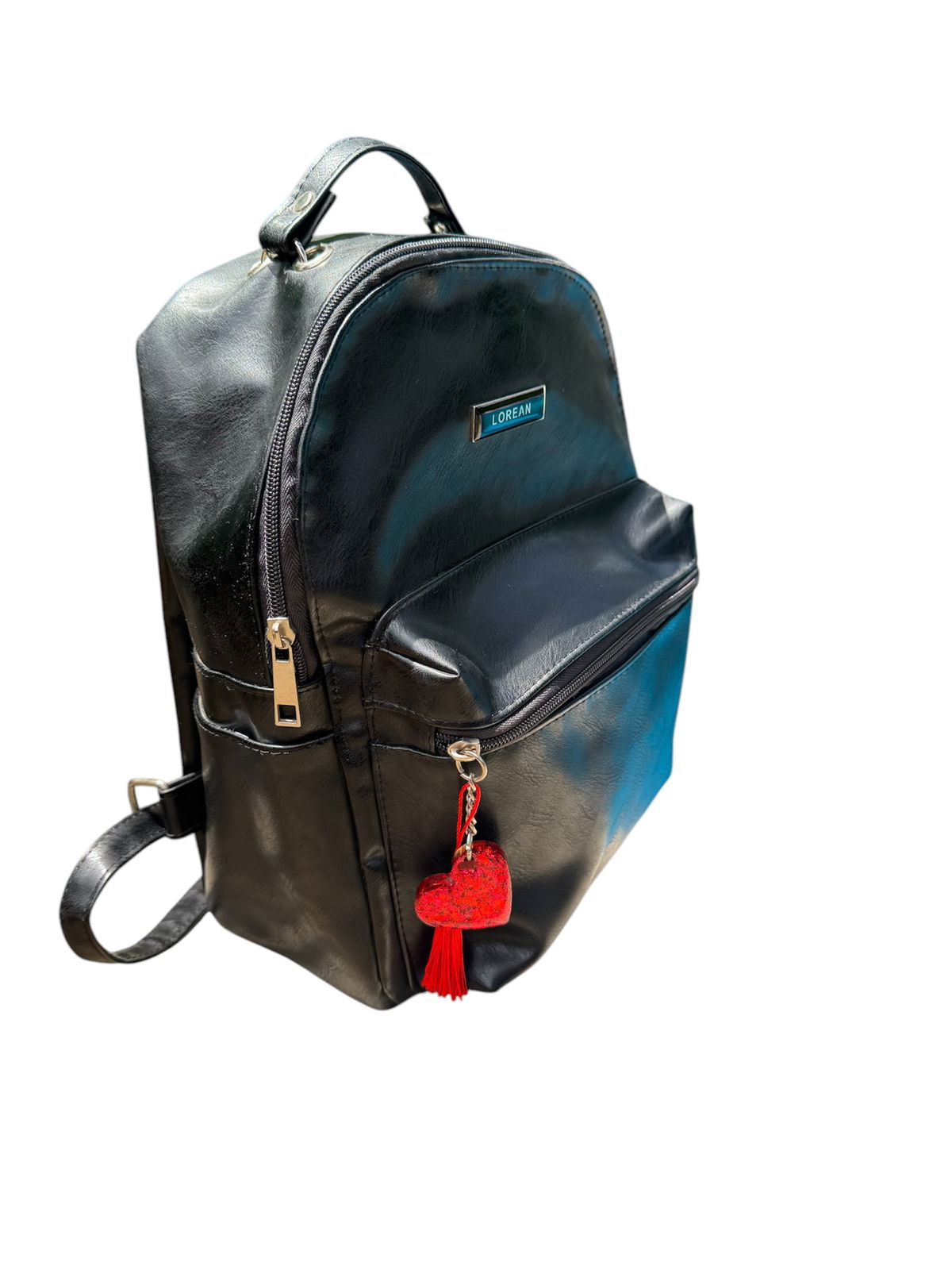 Material simil cuero PU, los herrajes color niquel , toda forrada en su interior, bolsillo interno y bolsillos laterales abiertos.