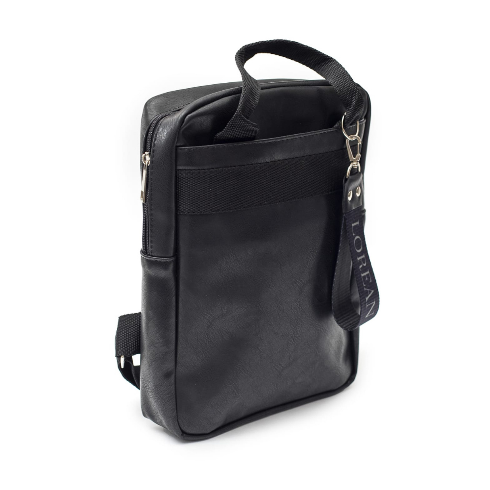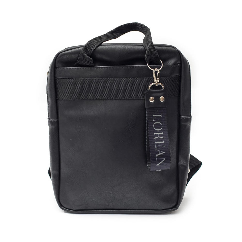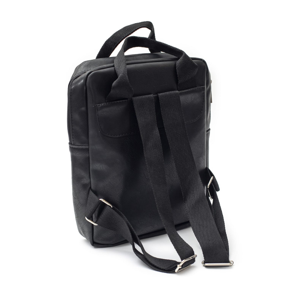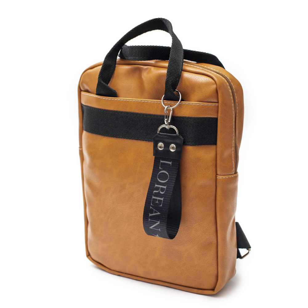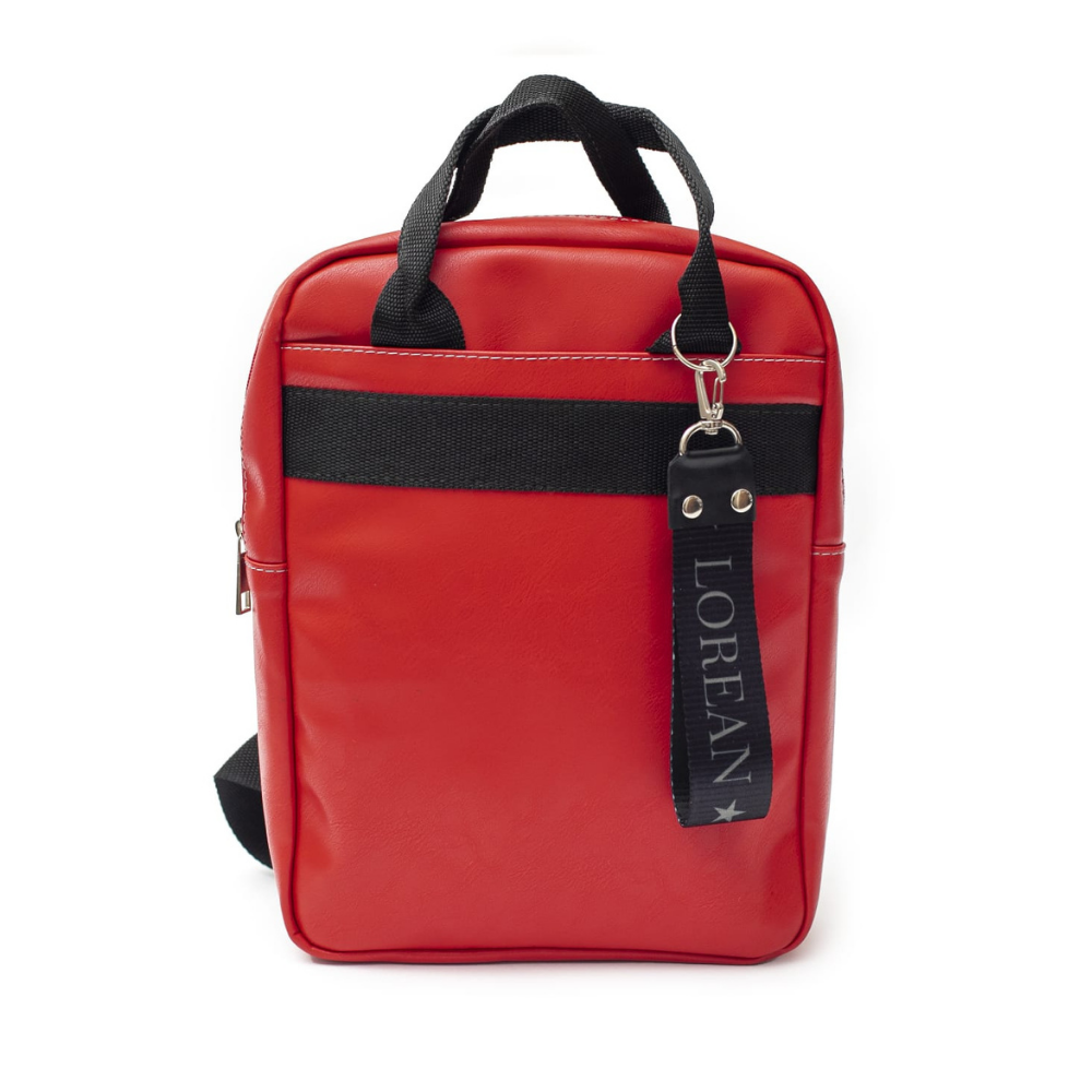 Material simil cuero PU , los herrajes en color niquel , toda forrada en su interior . Bolsillo exterior amplio en la parte delantera con cierre y un llavero con la marca .