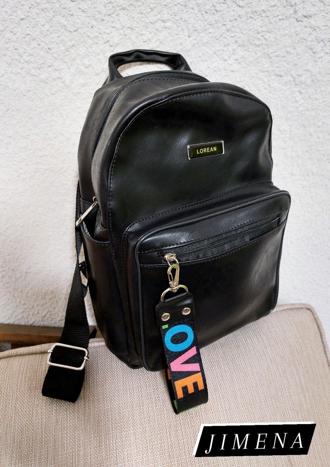 Material simil cuero PU , herrajes en color niquel , toda forrada en su interior con bolsillo interno y dos bolsillos laterales .