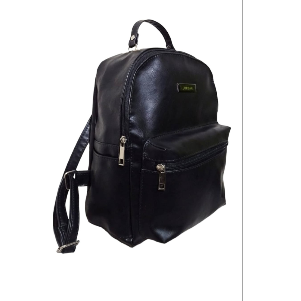 Material simil cuero PU, los herrajes color niquel , toda forrada en su interior, bolsillo interno y bolsillos laterales abiertos.